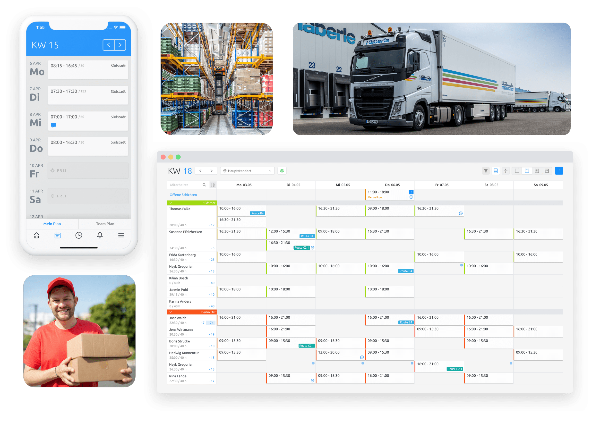 Lassen Sie Ihre Lieferanten ihre Verfügbarkeiten per App eintragen und Urlaubsanträge über das Smartphone stellen. Absprachen über WhatsApp und Telefon sind zeitaufwändig und verursachen Kosten für Ihren Logistikbetrieb.